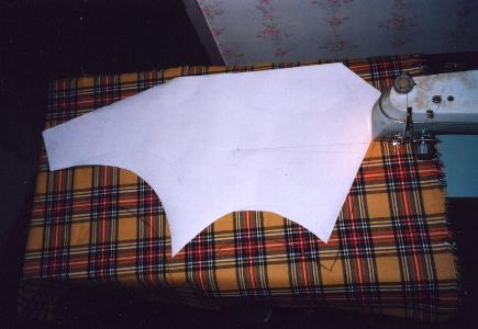 今回は、イベントリポートの前に衣裳製作リポートです。 設定資料集等は持っていないので、ビデオの静止画像から 型紙を起こす事にしました。 先ずは、胴体のパーツから。 |