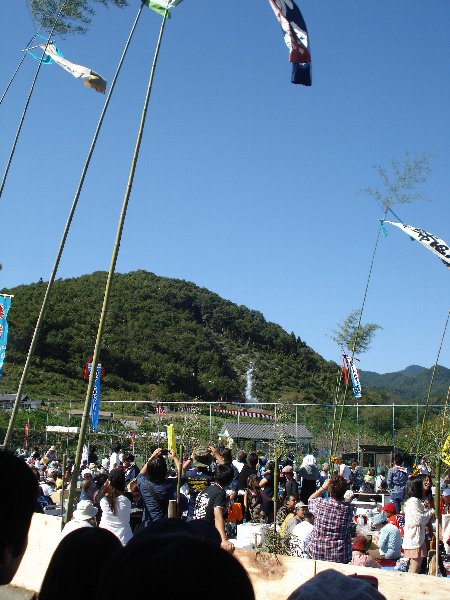 とてころが、この後仕掛けが開かず 竿は地上に突き刺さるように落下・・・・。 残念ながら失敗となりましたが めんまの中の人「茅野 愛衣」さんの 「来年はリベンジするぞ~っ」の声に 沸きあがる歓声。 |