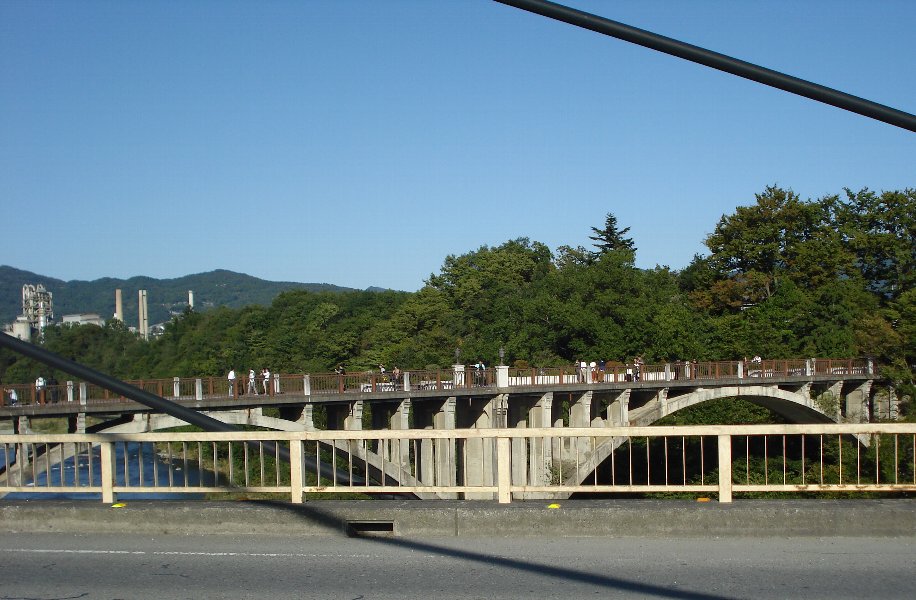 午後になると、次から次に龍勢祭りからの帰還組がやって来て 旧秩父橋はこの賑わいです。 |