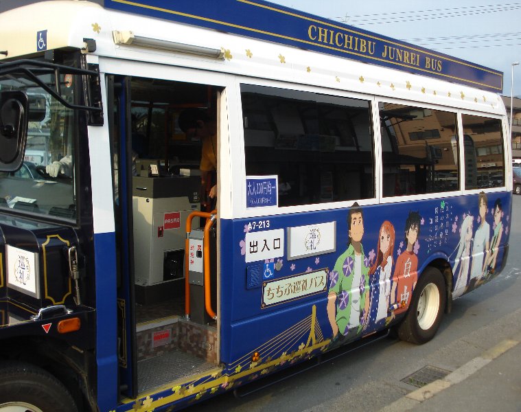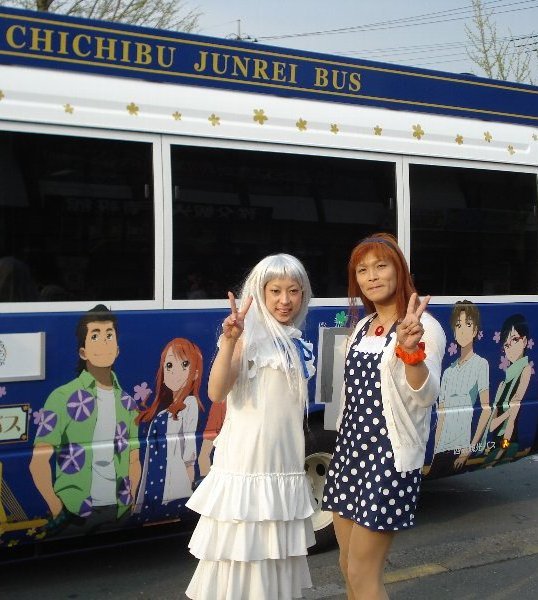実はこれ「あの花ラッピングバス」なのです。 |