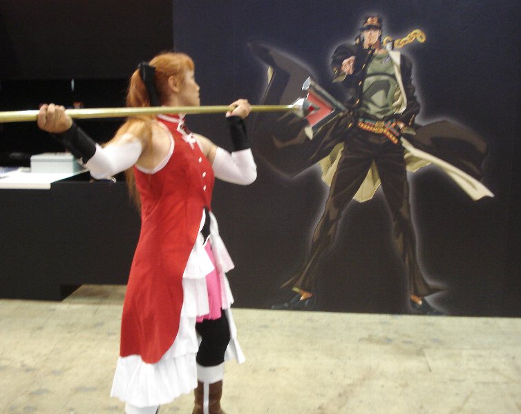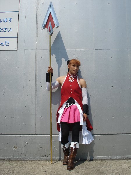 おおっ、ジョジョ発見! スタンドを出す前に、戦いを挑んでみた。 . ということで、 猛暑日のワンフェスでしたが、更衣室のあるホールは エアコンがとても良く効いていて、かなり快適でした。 着替えるときの環境というものは、実はかなり重要で ここがダメだと、その日のテンションが下がってしまいます。 ワンフェスでは、更衣室使用料などは発生しないので 入場料代わりのパンフレットを2000円で購入するだけで 登録すれば気軽にコスプレ出来るのが良いですね。 . 今回のワンフェスでは、造形に興味がある方や、ディーラー さんから声を掛けられたり、また写真を撮られたりと、槍に ついては、いろいろと興味を持たれたようです。 流石造形の祭典という感じで「ワンフェス」らしいですね。 |