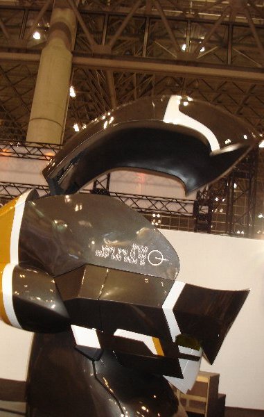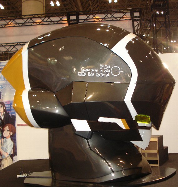 ここからはワンフェスらしく、ちょこっとだけ 会場内をリポート。 . 実物大の「チェインバー」頭部です。 ガンダムなどと比べると、小さい印象ですね。 |