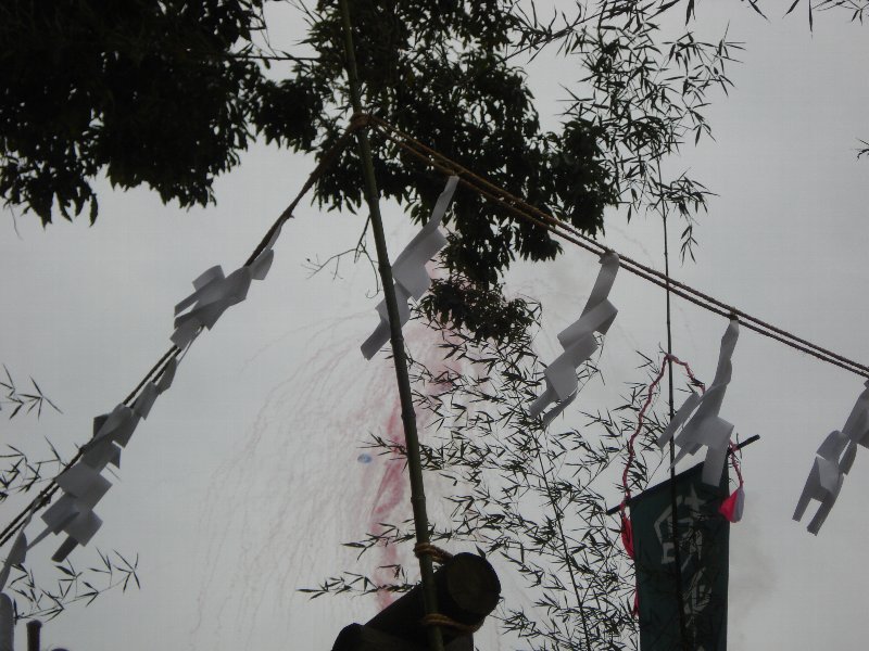 . . 見事大成功っ! . 今年は、綺麗に仕掛けが開きました。 . . ただ、ご覧のように口上櫓越しで見上げていたので 綺麗な写真は撮れませんでした。 . . 口上と龍勢、両方楽しむには、正面の「有料桟敷席」を 利用するしか手は無いんでしょうかね? . . |