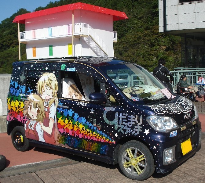 . . なんと、「ひだまり荘」を背負った「ひだまりスケッチ」仕様の痛車です。 . . . . . . . |