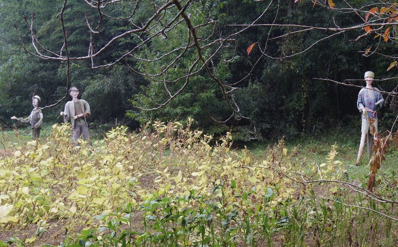 . 龍勢祭りの日は、龍勢会館から椋神社までの道路が 車両通行止めになるのですが、のんびりと歩いて移動 していたら、こんなものを発見しました。. . . まぁ「かかし」なんでしょうが、何とも言えない「味」が ありますねぇ。(笑) . . 車やバイクで走っていたら、おそらく気づかなかったでしょう。 . . . |