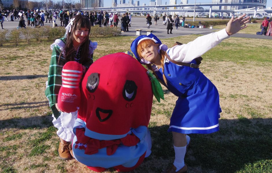 . チマメ隊 撮影風景のひとコマです。 . . . 防災公園は、広々としていて、とても良い場所なんですが . 冬コミ二日目は、かなり強い風に悩まされました。 . . . 野生のティッピー が、ちょっとヤヴァかったです。(笑) . . . . . |