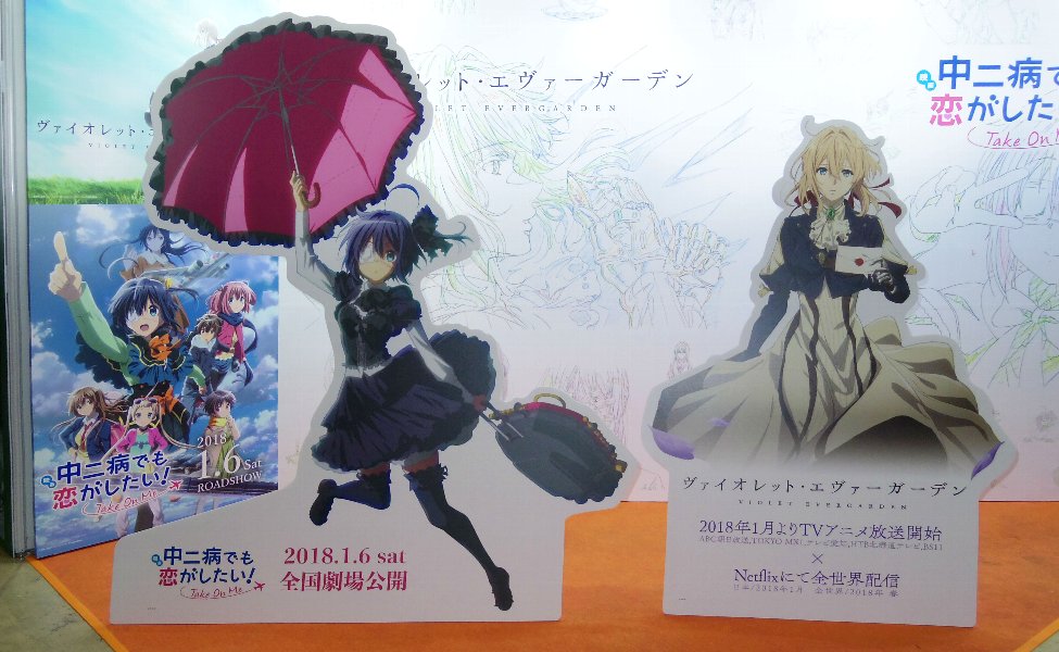 . ブースの反対側には、等身大ポップが飾られています。 . . . 映画 中二病でも恋がしたい! -Take On Me- の 六花ちゃん と . . 2018年1月より放送開始する ヴァイオレット・エヴァーガーデン の ヴァイオレット さん。 . . . . . . . . . . . |