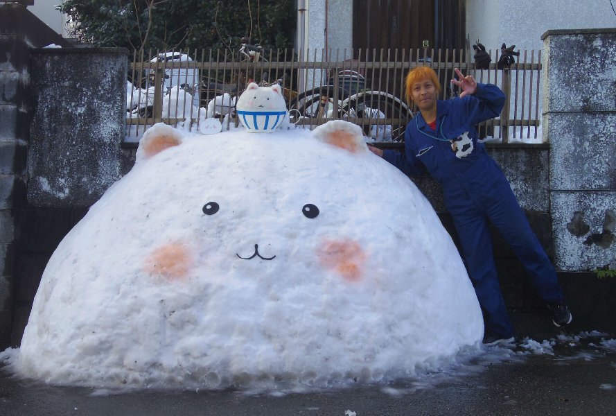 . 月がきれい 茜ちゃん . . 雪ティッピー が融け始めた頃に、また降って来たので . 思い切って、凝ったものを作ってみました。 . . 製作時間は、4時間くらい掛かりました。 . . . しかし、完成して4時間後、轟音と共に、跡形もなく . 崩壊してしまいましたとさ。(笑) . . . 流石に、雪が止んでからは氷点下にはなっていないので . 頭でっかちのこの形状では、仕方ないですね。 . . . 雪の茜ちゃん を実際に見れた人は、ラッキーですよ。(笑) . . . . . |