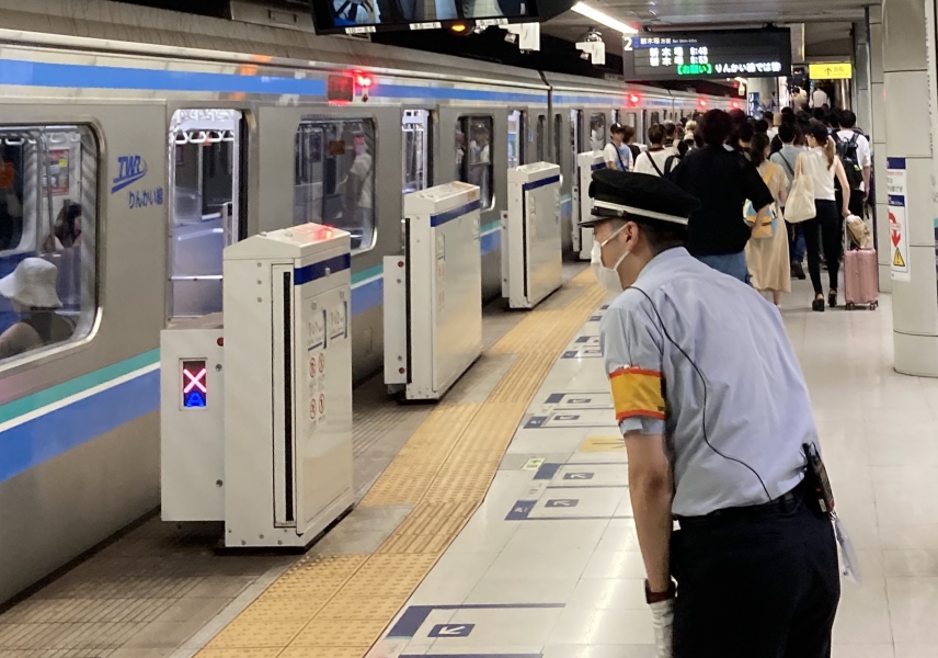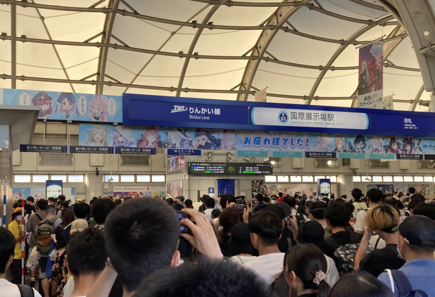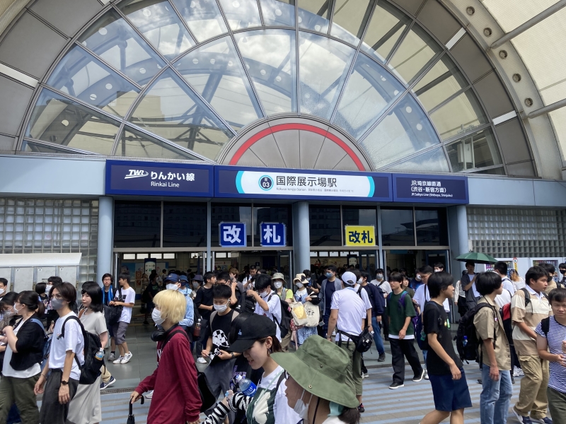 時間はちょっと戻って、最寄り駅の りんかい線 国際展示場駅 の様子。 駅員さん、ご苦労様です。 |