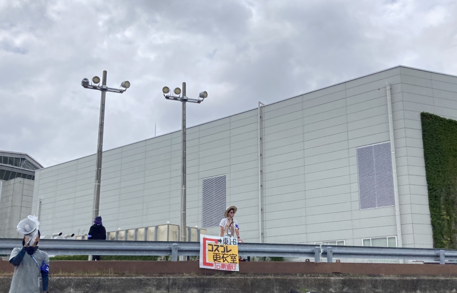 防災公園の横まで来ました。 今回、防災公園は解放されていないので 残念ながら、コスプレは出来ません。 |