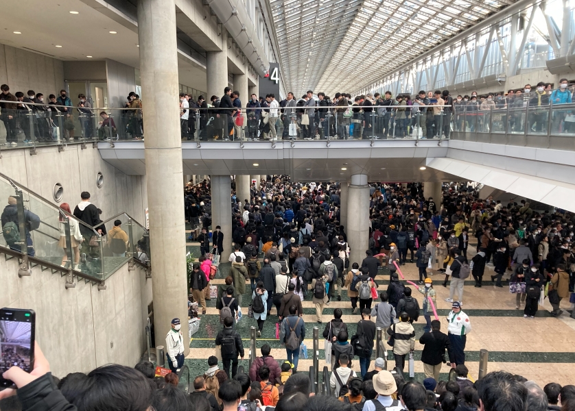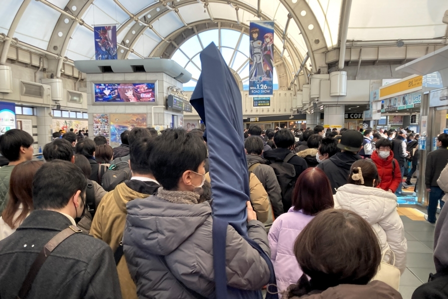 りんかい線を降り、国際展示場駅改札口に向かう人々。 |