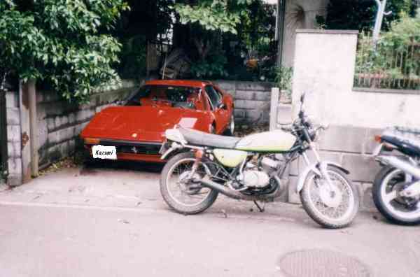 その大きな問題とは・・・・ 「レストアする環境」が整っていない事でした。もともと車一台とオートバイニ台分を駐車するスペー スはあったのですが、そこには屋根 が無く、ほぼ青空駐車状態でした。一旦レストア作業を始めてしまえば長丁場で挑む事になるだろうし、 なによりも分解した車を雨ざらしで 置いておく事は作業をする上で効率が悪いのです。自動車というものは乗っていると気付かないもので すが、さまざまなパーツに分解して いくと実に多くの部品で構成されているのが良く分かります。308GTBの場合、大きなパーツでは車 体本体、左右のドア、リアエンジン フード、フロントフード(ボンネット)、フロントスポイラーなど。これらのパーツを外したまま風雨に さらしてしまっては、レストアをしながら レストアをする事になってしまいかねないのです。 やはり屋根はぜひとも欲しい。屋根を設置するのだから、大工さんや左官やさんのお世話になるとして、 いったいどれくらいの予算が必要 なのだろうか。詳しくは分からないけれど、おそらく百万単位の請求書は覚悟する事になるのでしょう。 しかしそれでは308のレストア費用 に匹敵するくらいになってしまう。もともと、そのような予算が無いところから出発していたのに、 これでは意味が無くなってしまう。 どうしよう・・・・ でもちょっと待てよ。この作業も自分の手で出来ないものだろうか? いや、ぜひともやってみたい! いろいろ考えてみたけれど、これが わたしの導き出した結論でした。 とりあえず技術面は置いとくとして、まずはどのような形で屋根を設置するのか決めない事には、どんな 材料を揃えれば良いのかが決まら ない。駐車スペースの状況は、床面がコンクリート張りで、車道に面している部分以外はブロックが6段積み で壁(約1メートル)を構成して いる。まず最初に考えたのは、工事現場などのように鉄パイプで「足場」を組んで、一番上の部分に屋根を設 置する方法。これなら材料費 が安く上がりそうだ。しかしこのやり方では強度の問題が出てきてしまいそうだ。工事現場などで組まれて いる「足場」は、もともと一時的に 設置している物だし、ちょっと見た目もカッコ悪そうだ。で、この方法は却下。 次に考えたのは、木の柱を立てて、小さな家を建てるようにする方法。これなら強度も出るだろうし、 見た目もカッコ良くなりそうだ。 いやちょっと待てよ。この方法では、大工仕事をやったことの無いわたしにはちょっと難しすぎるし、 せっかく今あるブロック壁やコンクリート 敷きを、壊して造りなおすのは、ちょっと勿体無い。 う~ん困った、どうしよう? |