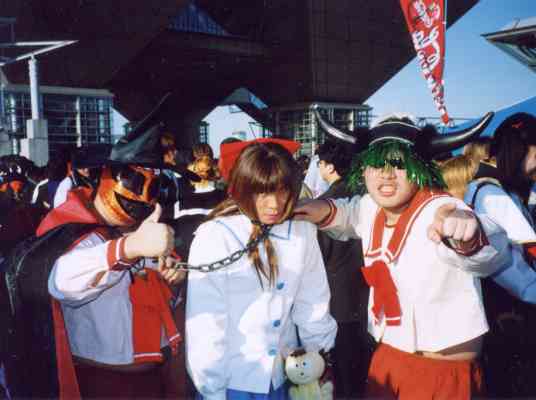 20世紀最後のコミケで・・・・ 世紀末姉妹さんに会えました。 うれしくって,ピース。 |