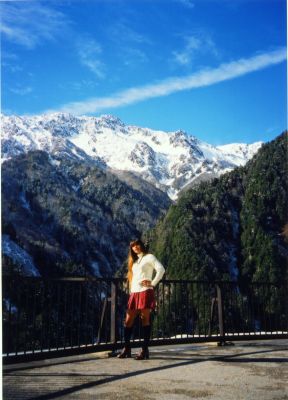 ここがダムの上です。 ダムの高さは186メートルで 日本一の高さ! もう雪が積もってます。 |