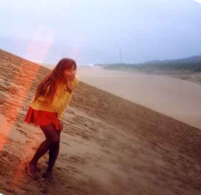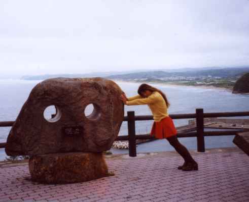 日本海の海岸線を一望できるポイント”覗台”です。 海岸線の先端には”鳥取砂丘”が見えます。 う~ん、それにしてもなんだか穏やかな顔してるのね~ん。 |